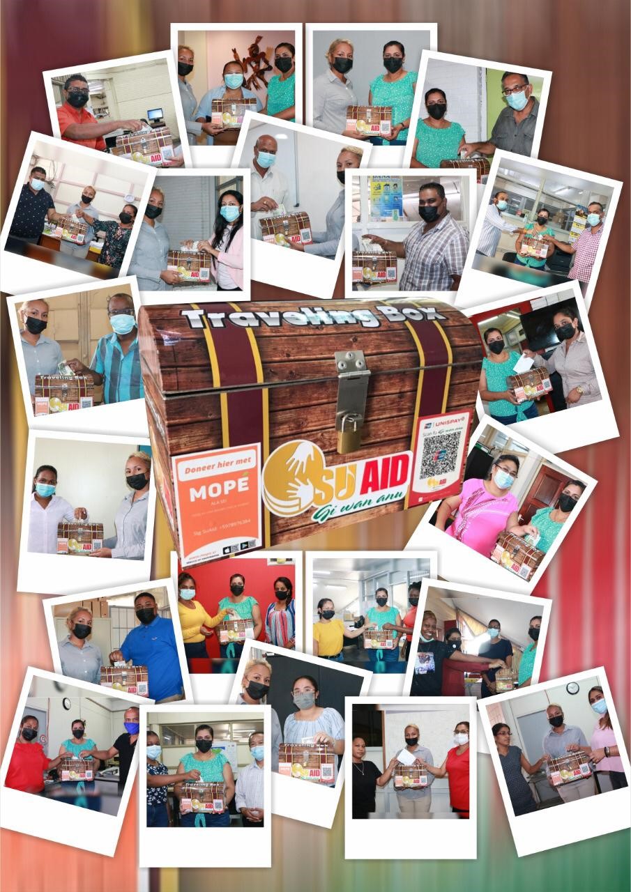 Stichting Su Aid is een Surinaamse hulporganisatie die jaarlijks geld inzamelt dat ze ontvangt uit giften en opbrengsten van verscheidene overheidsinstanties en bedrijven uit de particuliere sector. Dit jaar wordt door de instelling gecollecteerd voor de Nier Stichting Suriname, ter uitbreiding en renovatie van het Nationaal Nierdialyse Centrum aan de Henck Arronstraat. In dit kader heeft het ministerie van Openbare Werken (OW) een donatiebox helpen vullen.