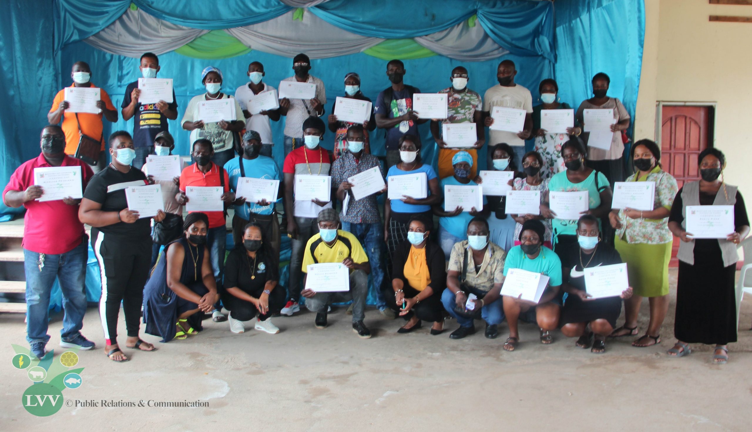 Na de drie trainingsdagen, die zowel theoretisch als praktisch waren, namen zij hun certificaten in ontvangst uit handen van de districtscommissaris van Marowijne Zuid-West, Olivia Dominie, de directrice Landbouw, Yvette Rokadji, en directrice Agrarische Ontwikkeling Binnenland, Hermien Pavion.