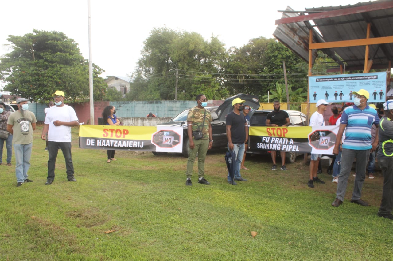 Een groepje personen dat fel gekant is tegen vaccinatiedwang heeft zaterdag, onder de vlag van De Samenwerkende Verontruste Burgers, Kerkgemeenschappen en Vakbonden, op het Bronsplein geprotesteerd tegen vaccinatiedwang, apartheid en haatzaaien. Opgeroepen werd onder andere bedrijven, zoals Fernandes, die personeel dwingen om zich tegen Covid-19 te laten vaccineren, te boycotten.