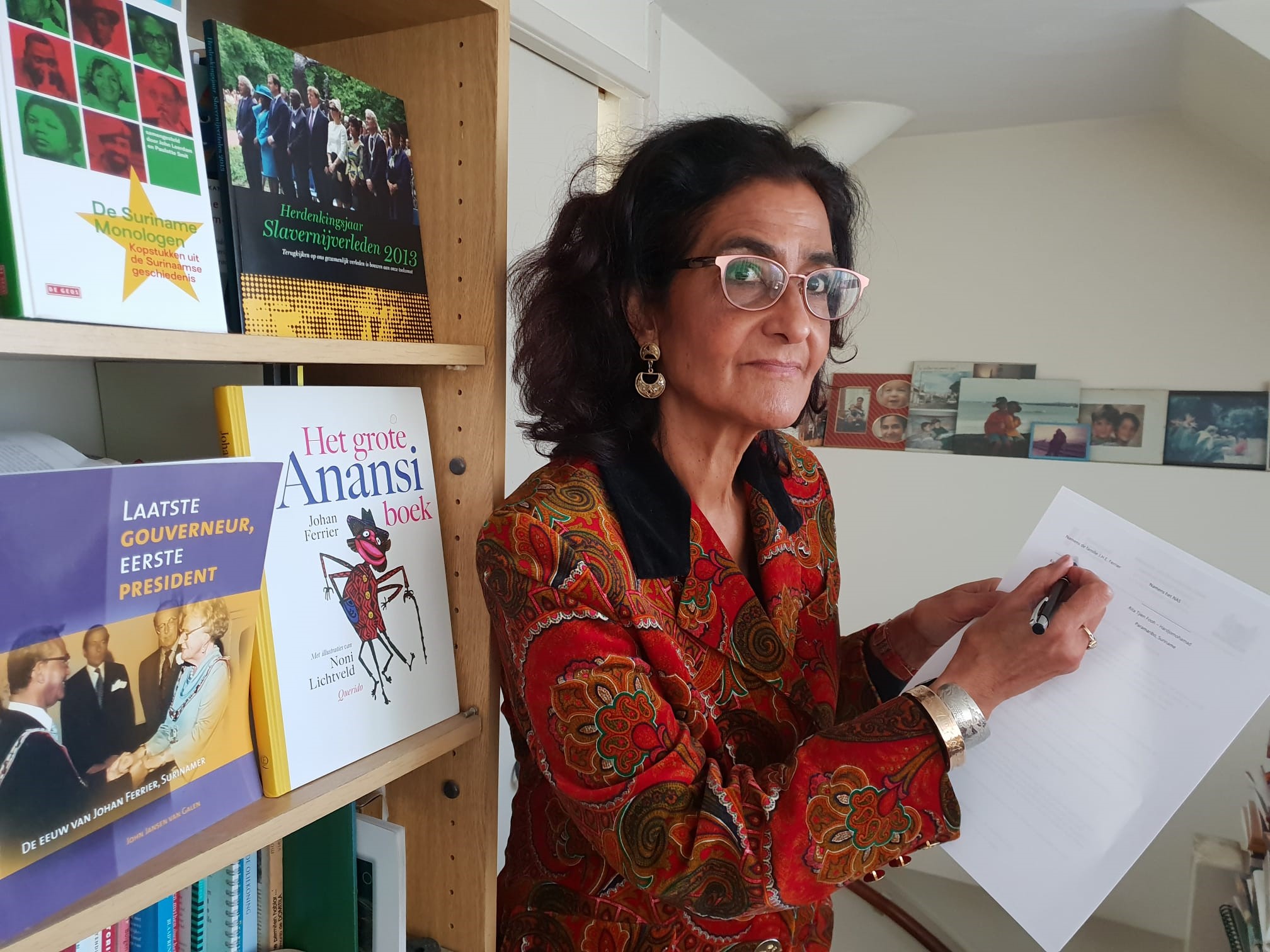 Kathleen Ferrier over de overdracht van het archief aan het Nationaal Archief Suriname: “Wat bijzonder om op deze dag, 46 jaar Srefidensi, deze belangrijke stappen te zetten. Ons gaat het erom het erfgoed van Johan Ferrier, laatste gouverneur en eerste president van Suriname, breed toegankelijk te maken, vooral ook voor jonge mensen, de komende generaties.”