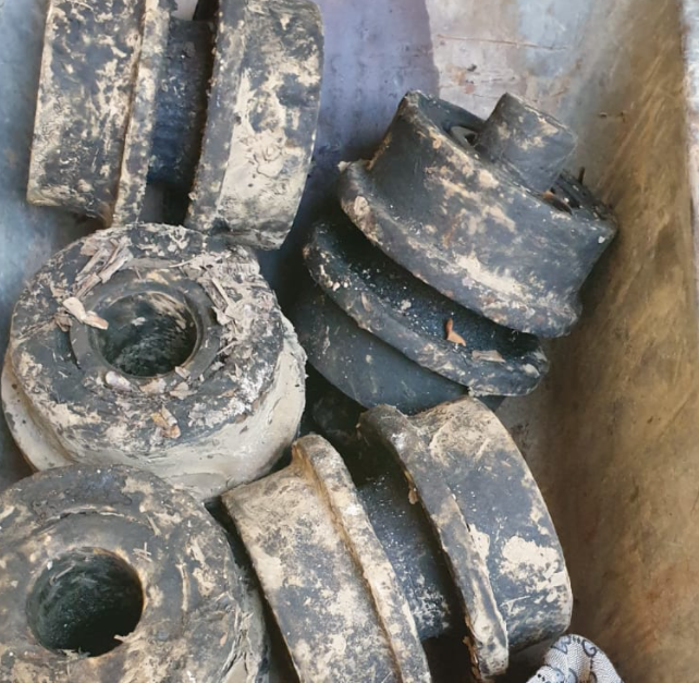 De agenten reden vervolgens naar de locatie voor het instellen van een onderzoek. Daar zagen zij de bekende van de politie S.H. (49) met bloot bovenlijf een kruiwagen met een aantal zogenoemde rupsbandrollers van graafmachines voortduwen. Aangezien deze graafmachineonderdelen heel zwaar zijn en een hoge economische waarde hebben, bestond het vermoeden dat ze van diefstal afkomstig moesten zijn.