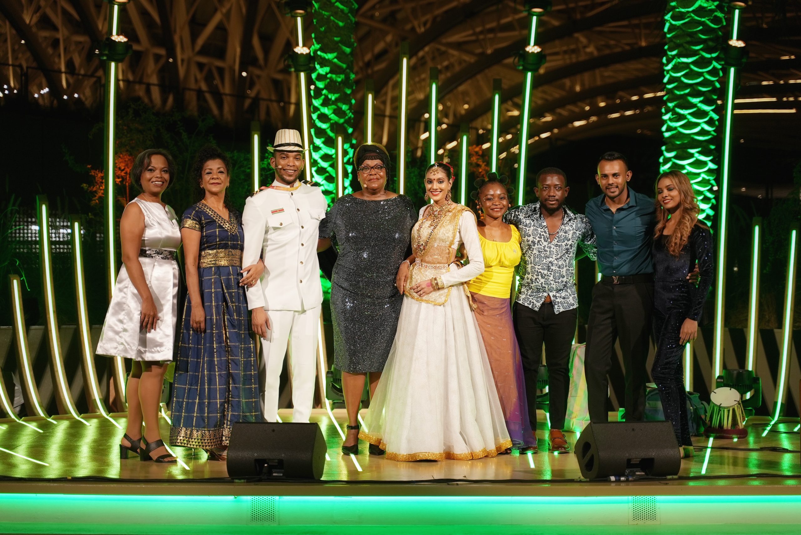 Shanita Bhagwandin, Kyran Rampersad, Jason Eduwaiti, Norma Sante, Kawish Bhugoea, Trees Ralim, Tanuya Manichand, Helianthe Redan, Rodney Deekman, Riccardo Steeman behoren onder anderen tot de groep en zorgen voor entertainment in het paviljoen van Suriname. Er staan zeker 20 optredens op agenda.