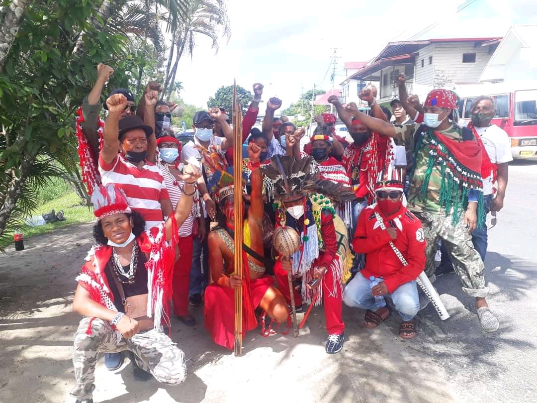 “De herdenking van Onafhankelijkheidsdag op 25 november, bij de herdenking van 46 jaren onafhankelijkheid, is de dag, die wij als beweging noodzakelijk vonden om de verklaring aan de president van het land aan te bieden. Wij wisten dat er een veiligheidszone was, en wij waren niet uitgenodigd. Er waren veiligheidsprotocollen opgesteld, vanwege Covid-19. Wij werden door lieutenant Douglas, die ons aangaf dat er geïnformeerd zou worden of wij toegelaten konden worden om de verklaring aan te bieden. Niet lang daarna werden wij omsingeld door politieagenten in grijs en de Mobiele Eenheid. De politie inspecteur gaf aan, dat ons verzoek nog in behandeling was en wij buiten de zone moesten wachten. Nadien kregen wij bericht, dat ons verzoek niet was gehonoreerd. Onze vraag is deze: “Zijn de protocollen vanwege Covid-19 van zodanige aard, dat ondanks wij onze PPE hadden, ons verzoek is geweigerd. Wat is de werkelijke reden?”