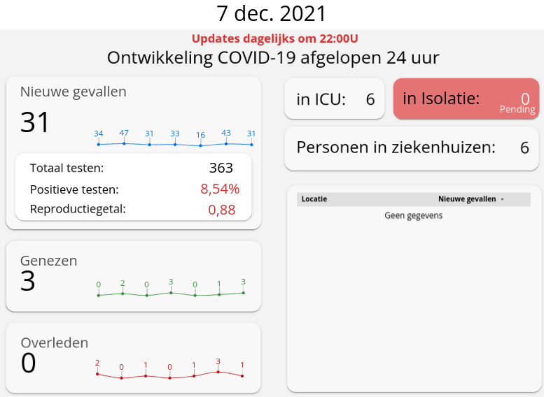 De BOG Covid-19 dashboard toont 7 december geen personen in isolatie.