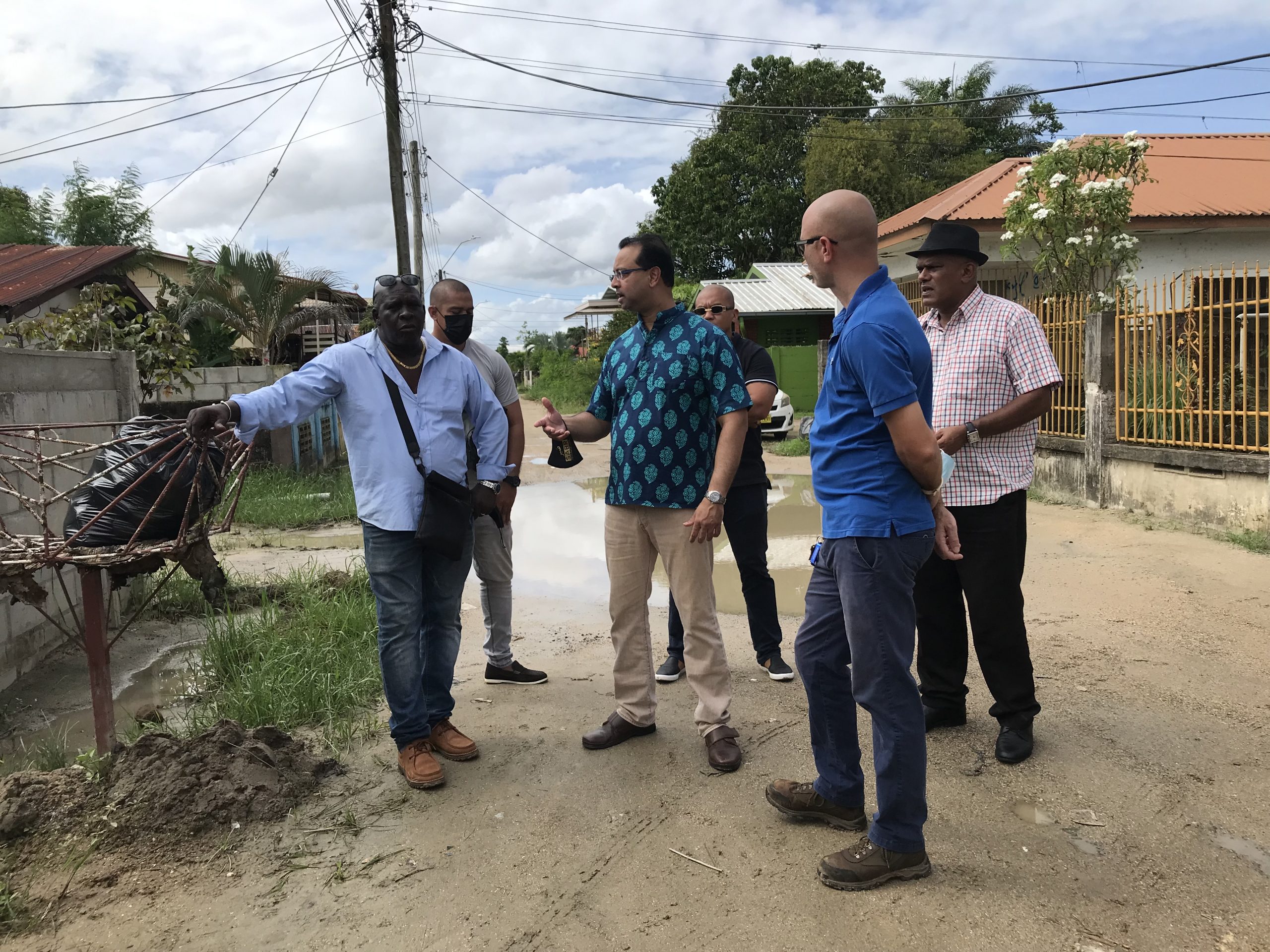 OW-minister Riad Nurmohamed bracht onlangs een bezoek aan de Geysvlietweg en de Latourweg en sprak met de buurtbewoners hierover. De bewindsman is enorm ingenomen met het feit, dat de buurtbewoners de ontwateringsproblemen zelf aanpakken en waar nodig hulp vragen aan het ministerie.