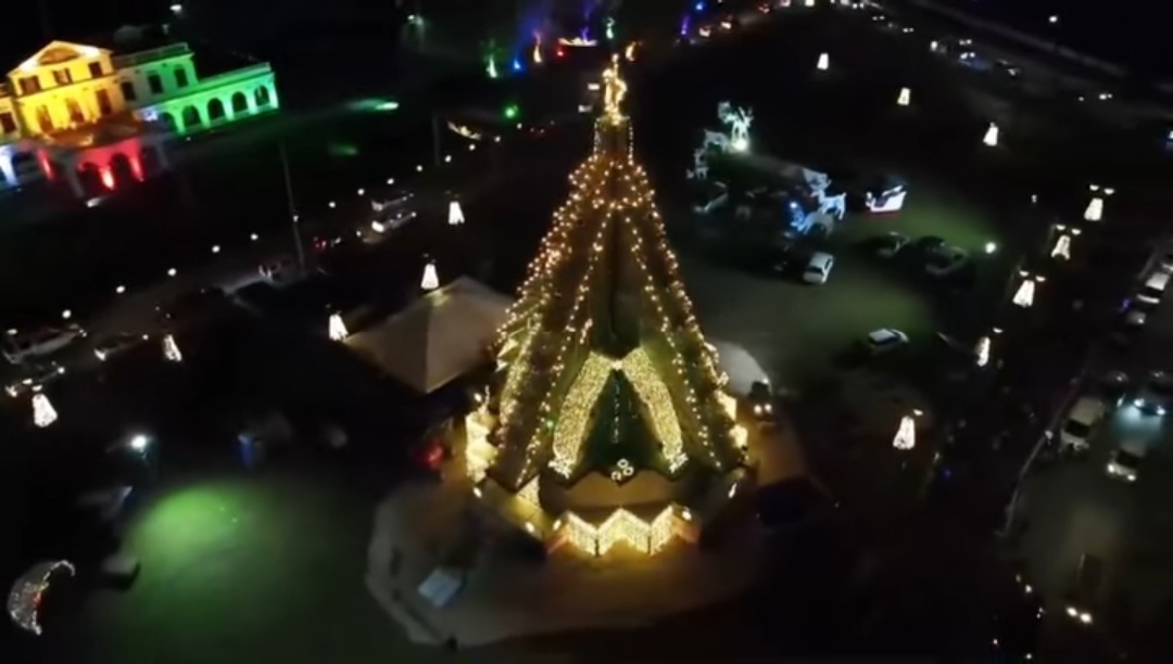 De spraakmakende kerstboom op het Onafhankelijkheidsplein is zondagavond formeel gepresenteerd aan de samenleving. President Chandrikapersad Santokhi en First Lady Mellisa Santokhi-Seenacherry waren daarbij aanwezig samen met jongeren en de Bisschop van Paramaribo.