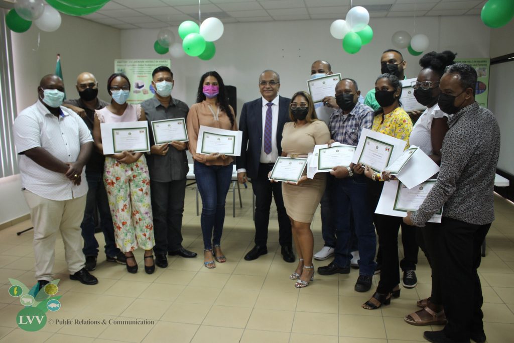 Tijdens de certificaatuitreiking woensdag 29 december, benadrukte LVV-minister Parmanand Sewdien het belang van de nieuwe taken van deze groep LVV-ambtenaren. Het directoraat Veeteelt timmert al lange tijd aan de weg voor het op adequate wijze kunnen uitvoeren van de verschillende taken en bevoegdheden binnen de wet Inspectie Vlees en Overige Dierlijke Producten. Met het succesvol afronden van de opleiding zal deze groep deze belangrijke rol naar eer en geweten moeten uitvoeren.Ā