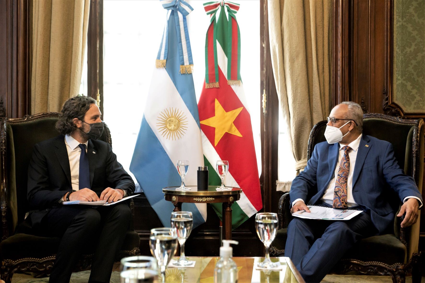 Op 6 januari 2022 vond een meeting plaats tussen Minister Albert Ramdin van Buitenlandse Zaken, International Business en Internationale Samenwerking (BIBIS) heeft donderdag in Buenos Aires, Argentinië, een ontmoeting gehad met zijn Argentijnse ambtgenoot Santiago Andres Cafiero, minister van Buitenlandse Zaken, Internationale Handel en Geloof. Minister Ramdin is in Argentinië in het kader van de 22e Community of Latin American and Caribbean States (CELAC) vergadering van ministers van Buitenlandse Zaken.