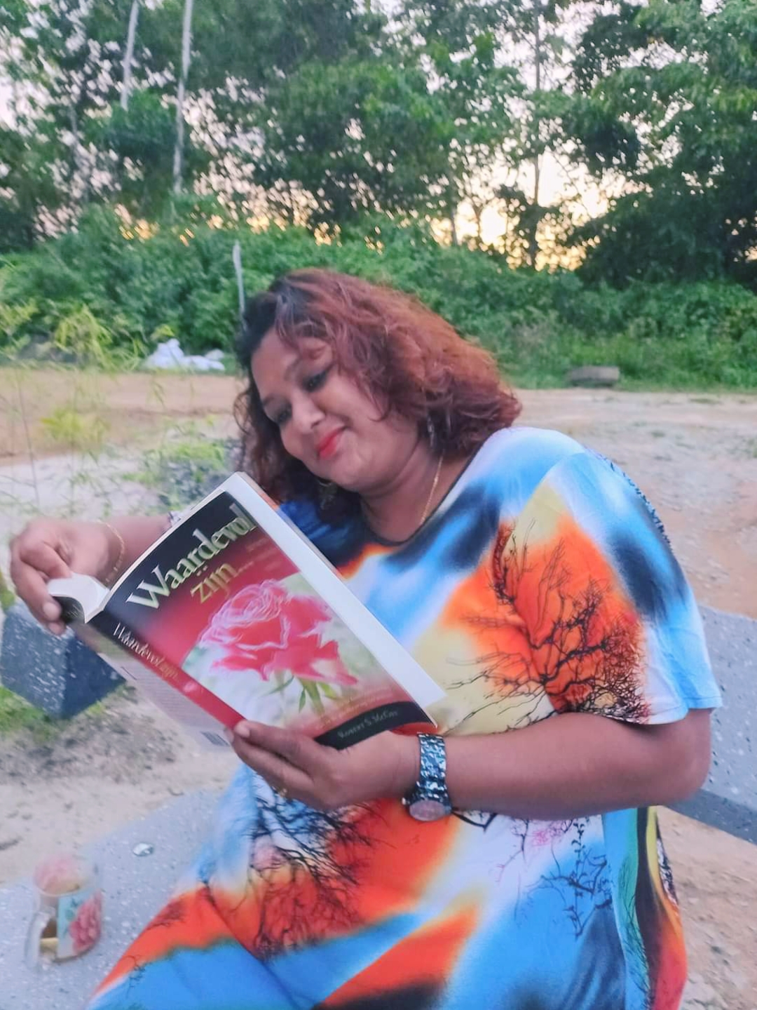 “Ik heb diverse artikelen gelezen over hoe groot de impact van tijd doorbrengen in de natuur op je gezondheid is en nu ervaar ik het zelf. Al anderhalf jaar ben ik bezig met een natuurpark te Commewijne (Growing Seeds) en iedere dag merk ik dat ik er gelukkiger van wordt. Het gevoel om ’s morgens op te staan en de tijd te nemen om in de tuin te zitten, de geur van de bloemen en het gras tot je te nemen, de vogels te horen fluiten en ook nog te ervaren hoe de wind met de bomen speelt, is bovenal onbeschrijfelijk. Ik had mijn spontane glimlach verloren, ik was vergeten wat ontspannen was en liet me meesleuren in de drukte van het leven. Dankzij dit park krijg ik mijn rust en humeur terug. Uit de natuur put ik mijn inspiratie, ik merk dat ik mij beter kan concentreren en voel mij minder gestrest en moe als ik aan een opdracht werk. Ik kan ook meer empathie voelen voor mensen en dingen om me heen en raak gestimuleerd om te reflecteren op problemen en situaties. Ik heb verder vooral geleerd om te genieten van alles wat bloeit en groeit. Eigenlijk kun je zeggen, dat dagelijks mijn bewondering groeit voor al het moois dat de schepping ons biedt.”