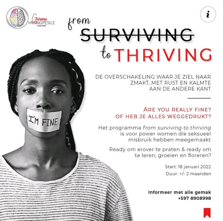 “Het gaat in dit programma om vrouwen die het al hebben overleefd, maar er is een andere stap, we willen niet alleen maar overleven, maar we willen echt leven. We don’t want to survive, we want to thrive. En vandaar dat ik dit programma heb gecreëerd. Dit programma kost wat, maar bij mij gaat het ook om de bewustwording.” Voor degene die het nog niet kunnen betalen of nog niet ready zijn om zich open te stellen, heeft Mwakipesile een 6-delige videoserie gecreëerd. Daarin wordt onder andere besproken wat trauma met je doet, hoe je los kunt laten etcetera. De 6-delige videoserie is op YouTube te vinden. Het programma duurt ongeveer 2 maanden. Daarvoor zijn er groepstrainingen en privé coaching sessies.