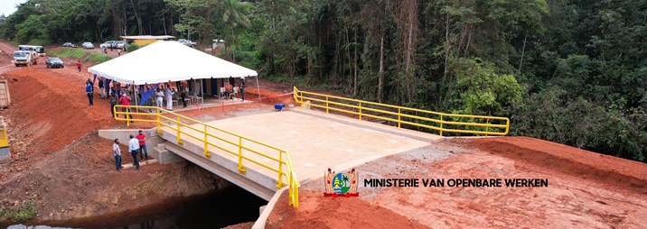 Newmont Suriname heeft vrijdag 28 januari de officiële opening verricht van de brug te Langa Tabiki weg ter