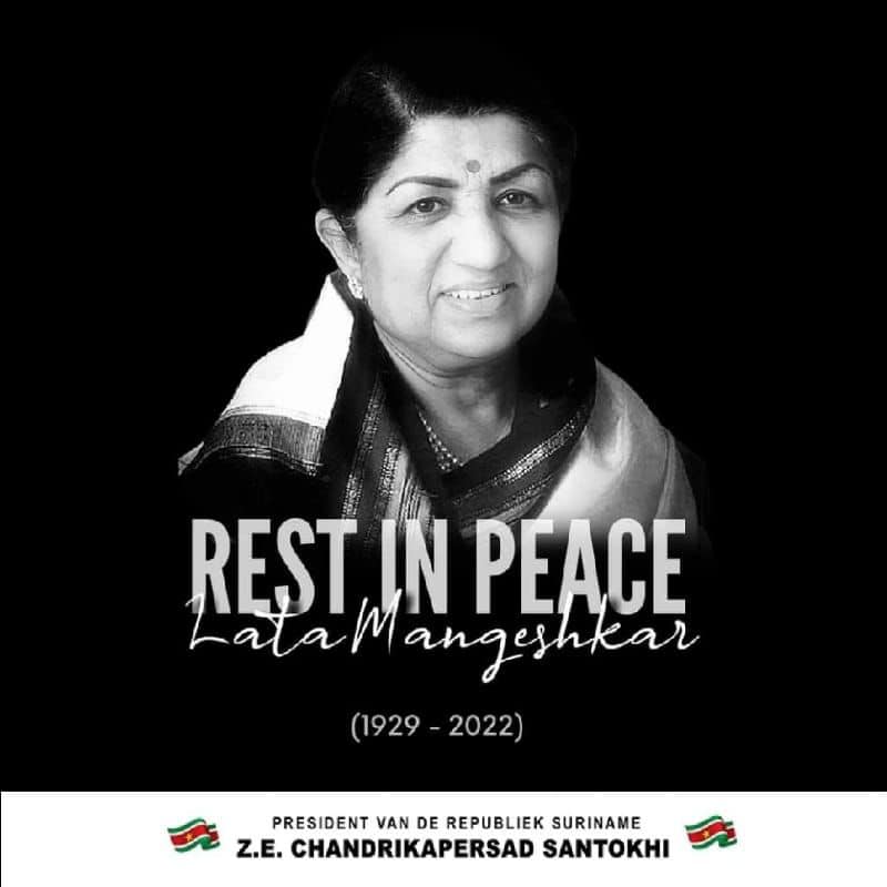 De ‘Nachtegaal van India’, zoals Lata Mangeshkar genoemd werd, is op 92 jarige leeftijd overleden. Mangeshkar begon op 5-jarige leeftijd met zingen en werd daarbij onderwezen door haar vader, zo bericht president Chandrikapersad Santokhi zondagochtend 6 februari op zijn Facebook-pagina. Hij vermeldt in het bericht absueievelijk dat de overleden ‘Nachtegaal’ een “staatsbegrafenis” krijgt, ze wordt echter gecremeerd met staatseer, aldus lokale media in India.