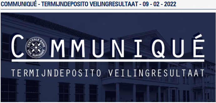 Bij de TD veiling afgelopen woensdag is voor de 1 weekse TD een bedrag van SRD 100 miljoen toegewezen. Voor de 1 maandse TD is het bedrag van SRD 200 miljoen toegewezen, en voor de 3 maandse TD’s een bedrag van SRD 100 miljoen. Voor al de drie TD’s hebben de banken meer aangeboden dan op de veiling was geplaatst.