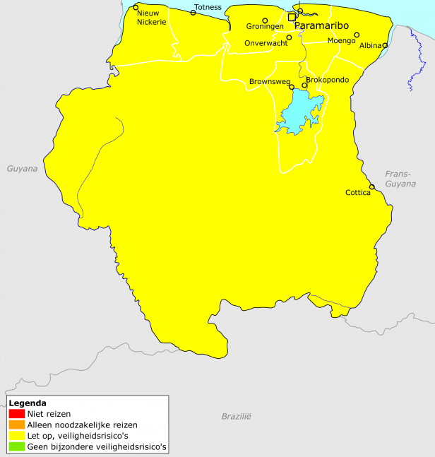 In een reactie tegenover Dagblad Suriname liet destijds Pieter de Vries, eerste ambassadesecretaris Politieke Zaken, Pers en Publieksdiplomatie van de Nederlandse ambassade in Paramaribo, weten: âNederland gebruikt voor alle reisadviezen de kaarten van de cartografische dienst van de Verenigde Naties. Daarvan wijken wij niet af. Omdat we begrijpen dat grenzen in sommige landen een gevoelig onderwerp zijn, hebben we onderaan de kaarten een disclaimer opgenomen: – âDe grenzen, namen en tekens op deze kaart impliceren op geen enkele wijze formele acceptatie of erkenning daarvan door het Koninkrijk der Nederlanden.â -â