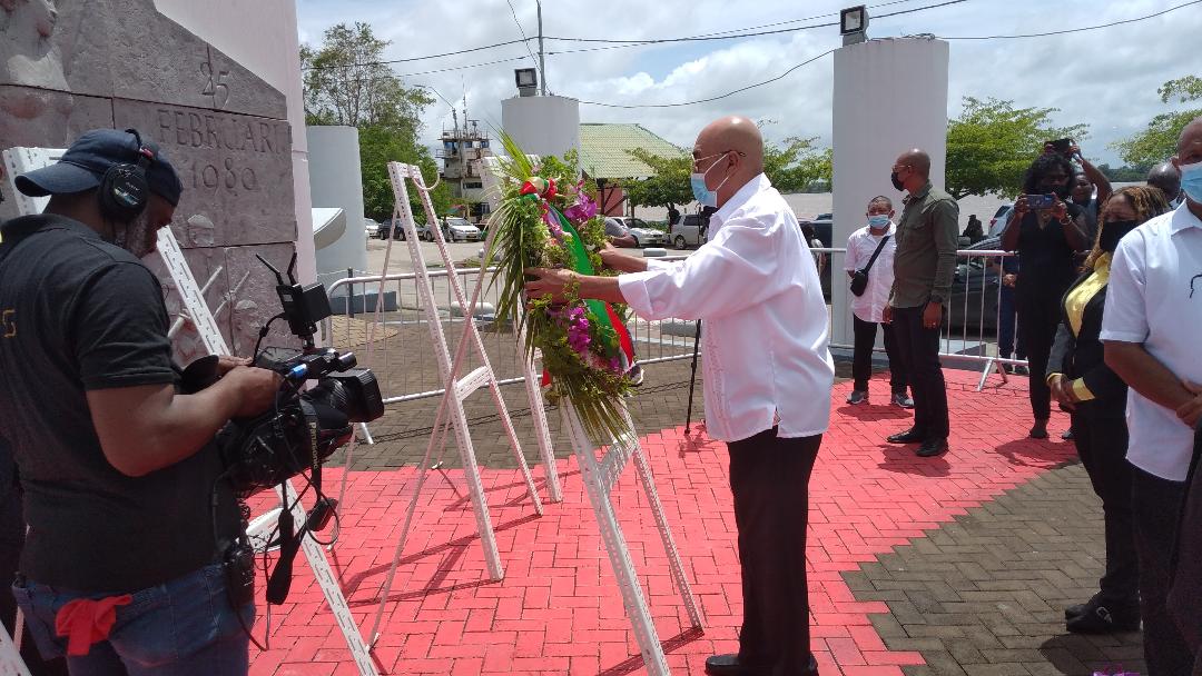 Onder wat naar NDP-maatstaven matige publieke belangstelling genoemd kan worden, hebben leider van de revolutie Desiré Delano Bouterse en een handjevol van nog in leven zijn leden van de groep van 16, vrijdag 25 februari rond het middaguur kransen gelegd bij het Monument van de Revolutie.
