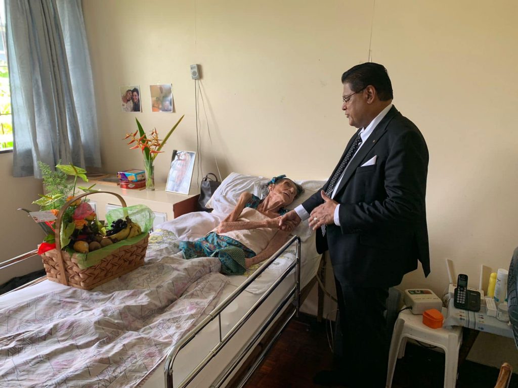 President Chandrikapersad Santokhi heeft zaterdag een bezoek aan mevrouw Gummels, die maar liefst 109 jaar is geworden, zo laat de president weten via zijn Facebook-pagina.