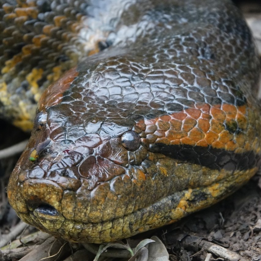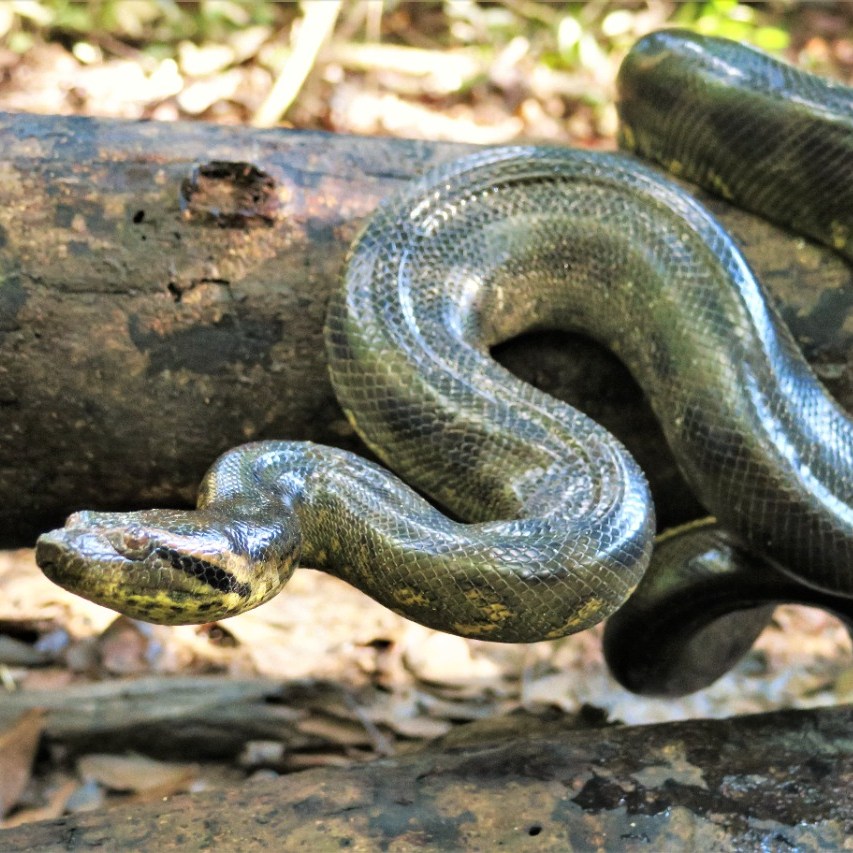 De anaconda is een grote dag actieve slang die zich veel in en rondom water bevindt. Ze is niet giftig, het is een wurgslang. Ze is te herkennen aan haar stevige bouw, donkergroene kleur met zwarte vlekken.