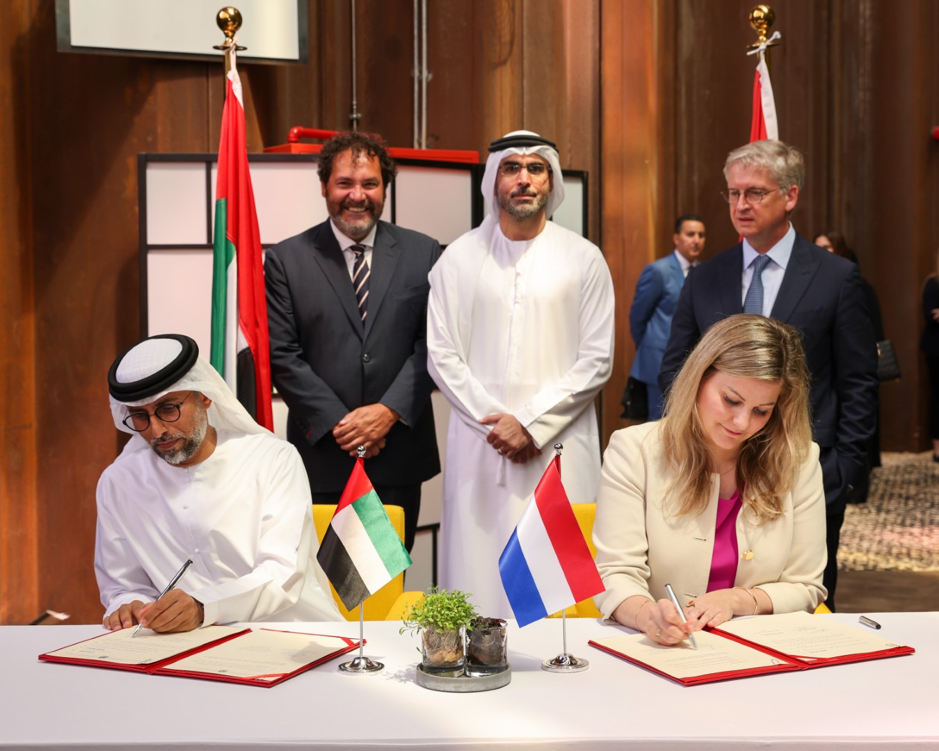 Het MoU werd ondertekend door Suhail bin Mohammed Al Mazrouei, minister van Energie en Infrastructuur, en de Nederlandse minister voor Buitenlandse Handel en Ontwikkelingssamenwerking, Liesje Schreinemacher, aldus het persbureau van de VAE, Emirates News Agency WAM.