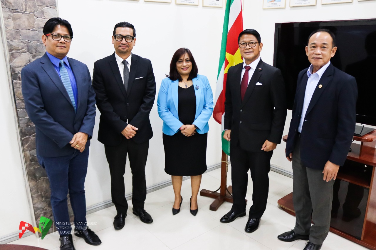 Minister Rishma Kuldipsingh van Arbeid, Werkgelegenheid en Jeugdzaken (AW&J), heeft vorige week donderdag ambassadeur Mario Chan van de Filipijnen, residerend in Brasilia, ontvangen voor een kennismakingsbezoek. Tijdens dit bezoek is de samenwerking tussen beide landen besproken. Ook het opstarten van meer kleine- en middelgrote bedrijven in Suriname is een aandachtspunt. Dit meldt het ministerie maandag 28 maart.