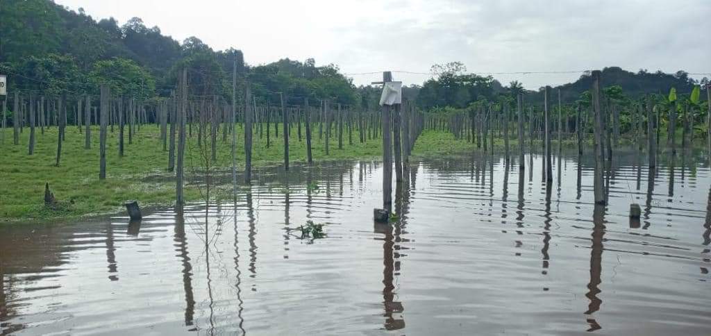“In 2015 zijn wij de onderneming in het gebied gestart om evidente redenen. Water is nodig bij telen, en om dichtbij de Surinamerivier te zijn zorgt dat ervoor dat je het geheel jaar door kan planten. In het begin hadden wij niet echt last van wateroverlast, maar de situatie die wij nu meemaken is sedert mei 2021 begonnen. Toen zaten wij af en aan tot eind augustus onderwater. In september zijn wij begonnen met opknapwerkzaamheden bij de farm. In november zijn wij toen officieel weer daar gestart en begin maart van dit jaar moesten wij alles evacueren. De overlaat kleppen van de Afobakadam zijn sedert maart open, waardoor het overtollig water uit het stuwmeer naar de Surinamerivier stroomt wat nadelig voor ons uitkomt. Sedert 3 maart hebben wij te kampen met wateroverlast. De arbeiders die daar zijn, hebben direct werk ervan gemaakt om te kijken welke gewassen nog te redden viel. Alles bij elkaar genomen is een ruwe schatting van $ 500.000 aan verloren productie en verloren investeringen sedert vorig jaar.”