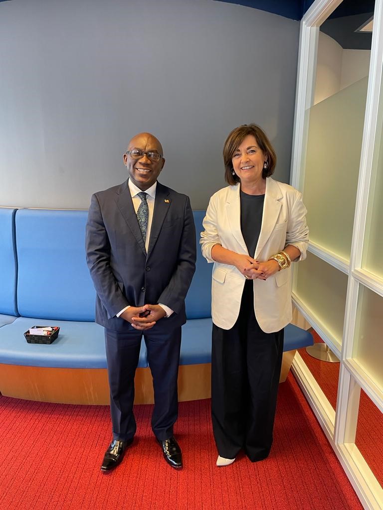 Op de foto minister Amoksi met Jacobine Geel, directrice van het College voor de Rechten van de Mens in Utrecht welk college 28 maart door de bewindsman en zijn delegatie werd bezocht.