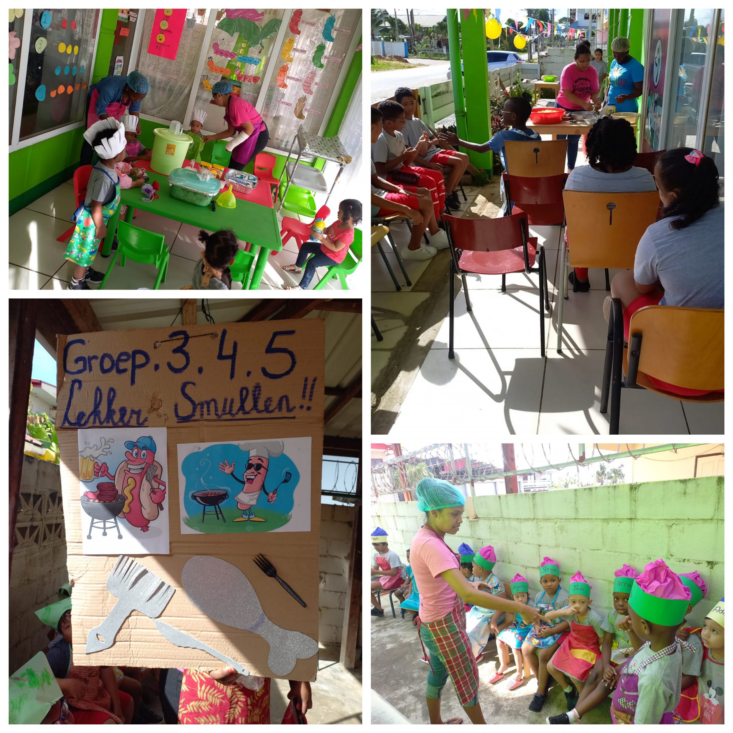 Verder hebben de kinderen vaardigheden bijgeleerd, zoals de hoeveelheid zout, blom, suiker enzovoorts die in een bepaald gerecht gaat. Een deel van de iets oudere kinderen waren buiten met een kookpot. Aan hen werd de ‘fosteng patoe’ tevens barbecueën aangeleerd.