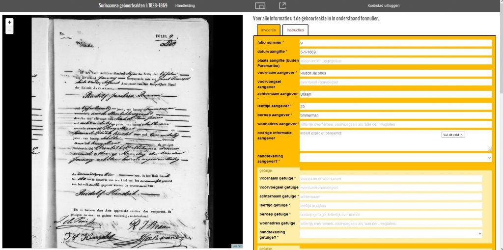 “Iedereen die wil deelnemen kan zich aanmelden op dit forum: https://hdsc.ning.com. Op het forum staan ook de handleidingen en een link naar de invoerpagina, waar u de akten kunt invoeren. Doe mee! Want alleen samen kunnen we het verleden van Suriname en het verleden van uw familie online openbaar maken”, aldus Van Galen.