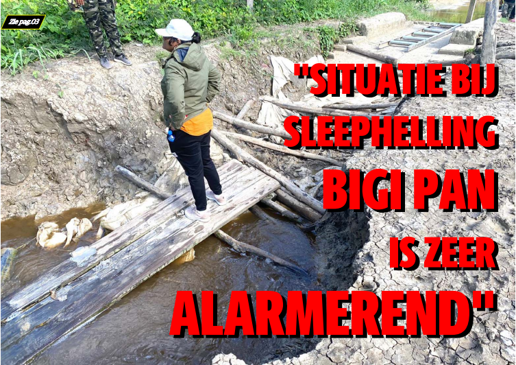 Districtscommissaris Senrita Gobardhan van Nickerie spreekt van een ‘zeer alarmerende’ situatie bij de bekende sleephelling te Bigi Pan. Ze heeft deze week de situatie zelf ter plekke in ogenschouw genomen. Volgens haar is “dringende afbakking van de kreek vereist, willen we de gebieden die nu al een waterstand tot enkelhoogte aangeven geheel niet laten uitdrogen”.