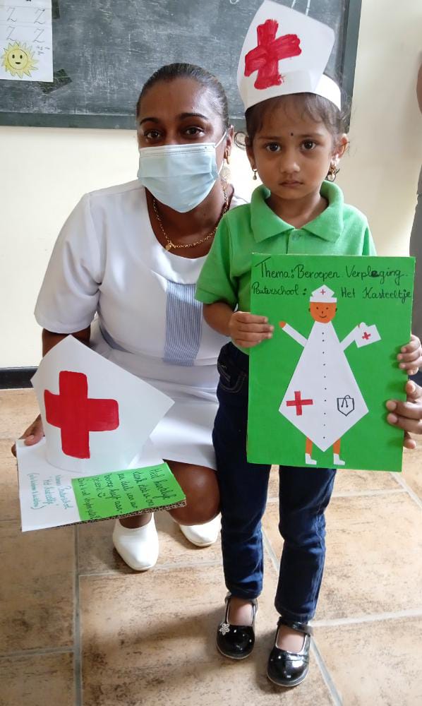 Het is belangrijk dat een kind op zeer jonge leeftijd al weet welk beroep hij of zij in de toekomst wil uitoefenen. In dat kader hield peuterschool en naschoolse opvang Het Kasteeltje in het district Saramacca een informatiedag over een van de meest uitgeoefende beroepen, verpleegkundige.