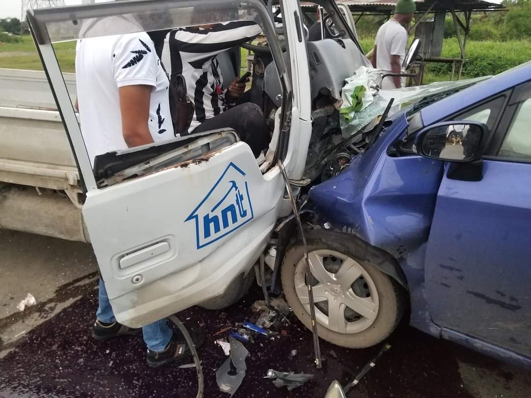 De bestuurder van die truck en zijn twee inzittenden liepen letsels op en zijn in een ambulance vervoerd naar de Spoed Eisende Hulp van het Academisch Ziekenhuis Paramaribo. De bestuurder, in het bezit van een Surinaams rijbewijsm verkeerde niet onder invloed van alcohol. De materiële schade aan beide voertuigen is aanzienlijk.
