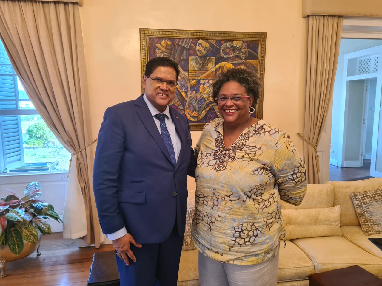 President Santokhi is samen met minister Albert Ramdin van Buitenlandse Zaken, International Business en Internationale Samenwerking afgereisd, op uitnodiging van premier Mottley.