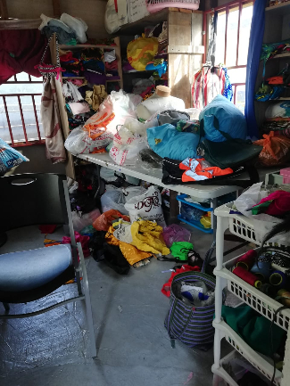 “Mijn zusje en ik draaien samen een bedrijf. Ik ben modiste, en zij geeft pedicure en manicure behandelingen. Ik ben 4 naaimachines en mijn steamer kwijt. Spullen die ik allemaal nodig heb om te werken. Hoe moet ik nu werken om mijn brood te verdienen? Mijn zusje haar spullen zijn ook niet bespaard gebleven. Al haar pedicure en manicure werkspullen hebben die gasten meegenomen.”