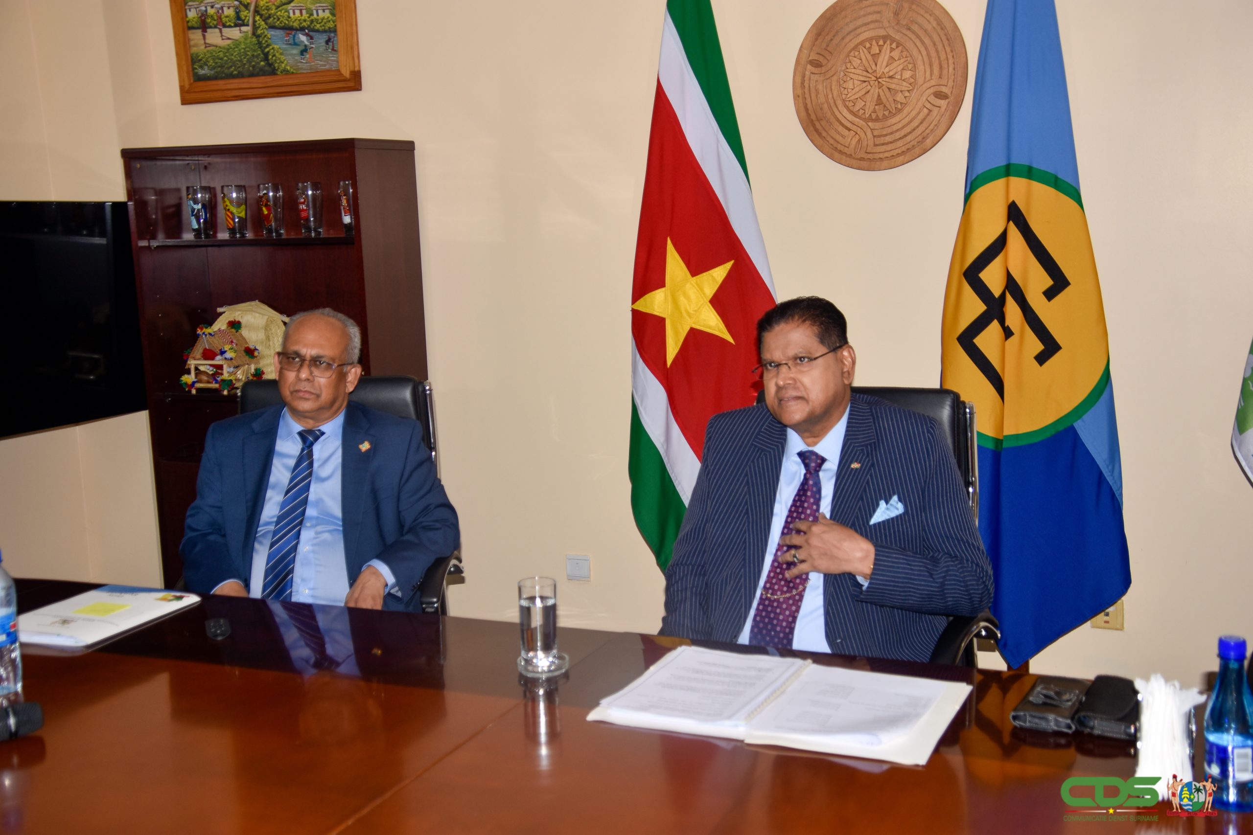 In het ministerie van Buitenlandse Zaken, International Business en Internationale Samenwerking (BIBIS) werd vrijdag een virtuele zoom staatshoofden vergadering bijgewoond door president Chandrikapersad Santokhi en minister Albert Ramdin van BIBIS. De Caricom regeringsleiders en premiers hebben via de videoconferentie vergaderd met de vicepresident van de VS, Kamala Harris. Deze vergadering was bedoeld om een aantal zaken te bespreken inzake de relatie tussen de VS en de Caricom regio.