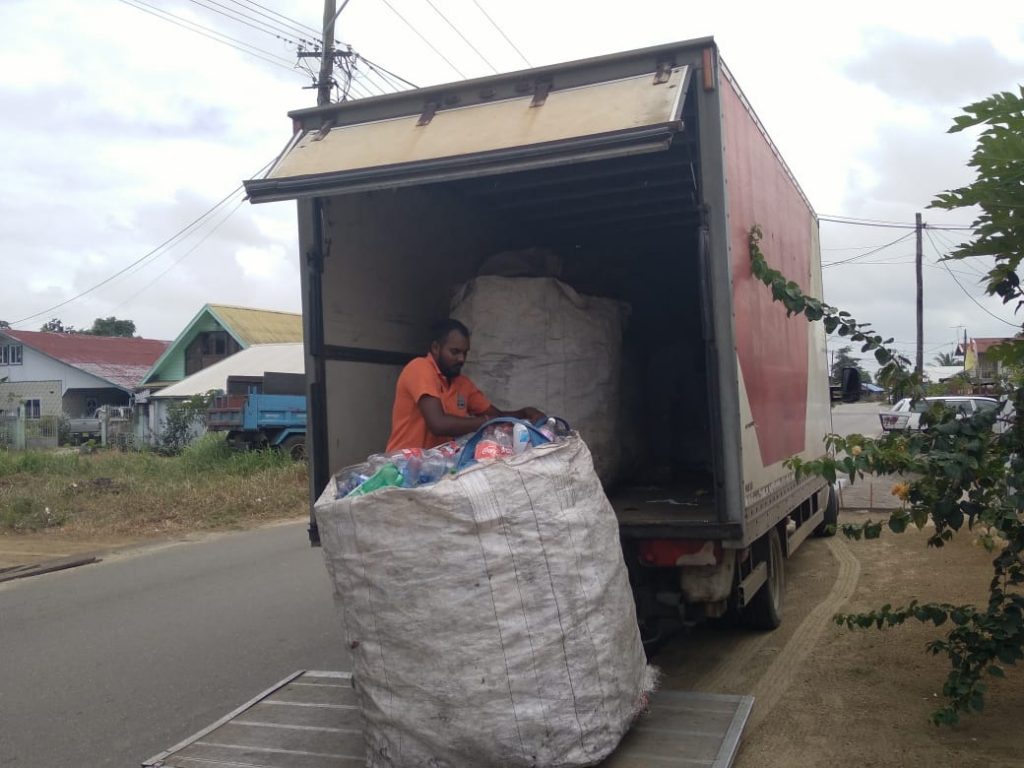 “Dit is een van mijn sociale projecten die ik uitvoer met de mensen van stichting de Stem. Dit is ons tweede geslaagd project. Samen met de stichting, verzamelen wij plastic flessen en aluminium blikken.“