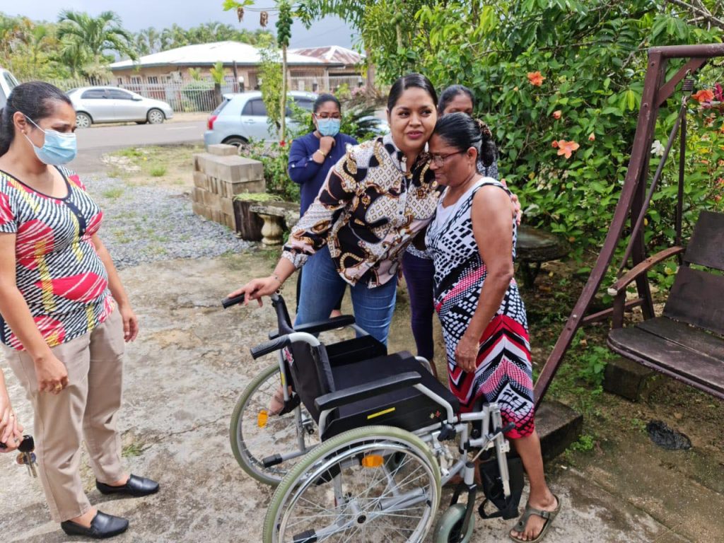 Van deze gelegenheid werd ook gebruikgemaakt om twee rolstoelen te overhandigen aan behoeftigen en wel aan mevrouw S. Sookhoo in het ressort Tijgerkreek en aan de heer K. Gajadien in het ressort Calcutta.