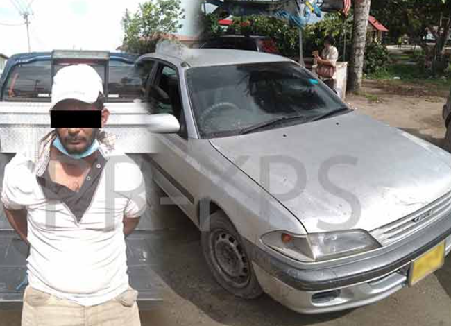 De 37-jarige R.S. is vrijdagmiddag 13 mei na verkregen informatie door leden van het RBTM (Regio Bijstand Team Midden) in een door hem gestolen auto in de J.S. Lawtonlaan te Paramaribo opgespoord en aangehouden. De eigenaar van de auto had donderdagavond 12 mei aangifte van diefstal van zijn auto gedaan op het politiebureau Santo Dorp.