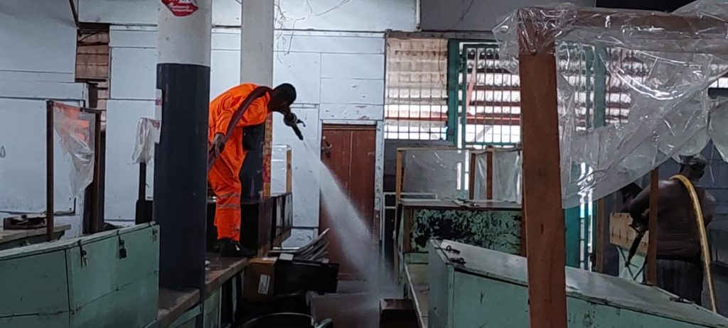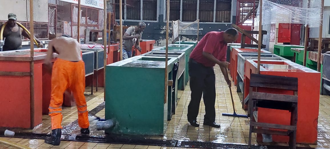 De Centrale Markt in het centrum van Paramaribo heeft afgelopen weekeinde weer haar grote schoonmaakbeurt gekregen. Standhouders zijn tevreden met het resultaat en hopen dat de verkoop vlotter kan gaan.