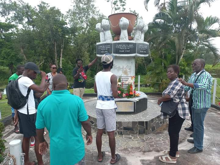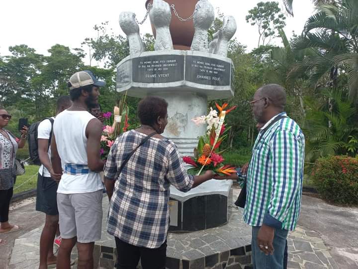 Op deze bijzondere dag had het bestuur de 8 helden (familiehoofden), die het voortouw hadden genomen om de plantage te kopen, gememoreerd. Uiteraard had iedereen bijgedragen, zegt Pique. Het bestuur had een bloemstuk geplaatst bij het monument ter ere van de kopers.