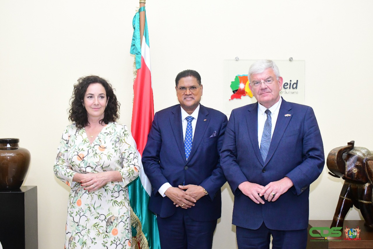 President Chandrikapersad Santokhi heeft dinsdag 24 mei de burgemeester van Amsterdam, Femke Halsema, en de voorzitter van de Vereniging van Nederlandse Gemeenten (VNG) – tevens burgemeester van Den Haag -, Jan van Zanen ontvangen op het Kabinet van de President. Dit bezoek is bedoeld om de samenwerking tussen Suriname en Nederland op een aantal gebieden meer gestalte te geven, onder andere op het gebied van waterbeheer, toerisme en stadsontwikkeling.