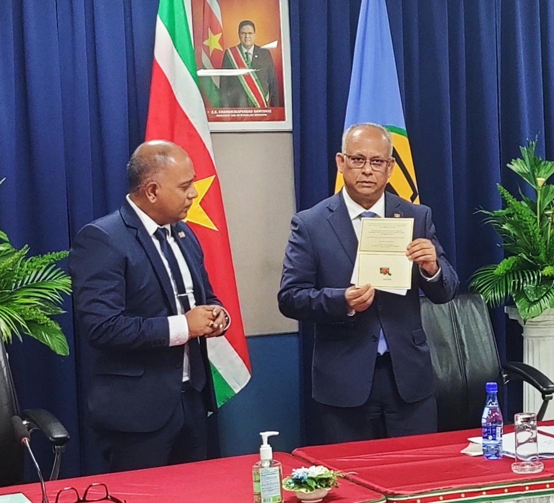 Minister Albert Ramdin van Buitenlandse Zaken, International Business en Internationale Samenwerking (BIBIS) ontving maandag 23 mei een speciaal carnet uit handen van directeur Ravin Dahoe van Surpost. Deze herdenkingsenveloppe is uitgegeven ter gelegenheid van de herdenking van de inauguratie van de ambassade en het consulaat van Suriname in Marokko woensdag 25 mei.