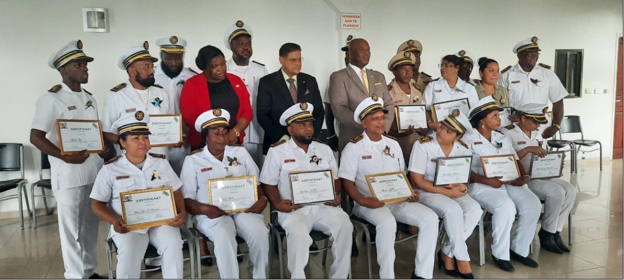 Vicepresident Ronnie Brunswijk hield de dc’s voor, dat leren nooit ophoudt. Hij zegt dat hun buitengewone leiderschapskwaliteiten invloed zullen hebben op de resultaten. “U bent niet klaar met het opdoen van kennis, uw leerweg gaat door. Zet u de opgedane kennis om in de praktijk. Werk naar eer en geweten en stelt u zich altijd integer op naar de gemeenschap toe”, aldus de vicepresident.