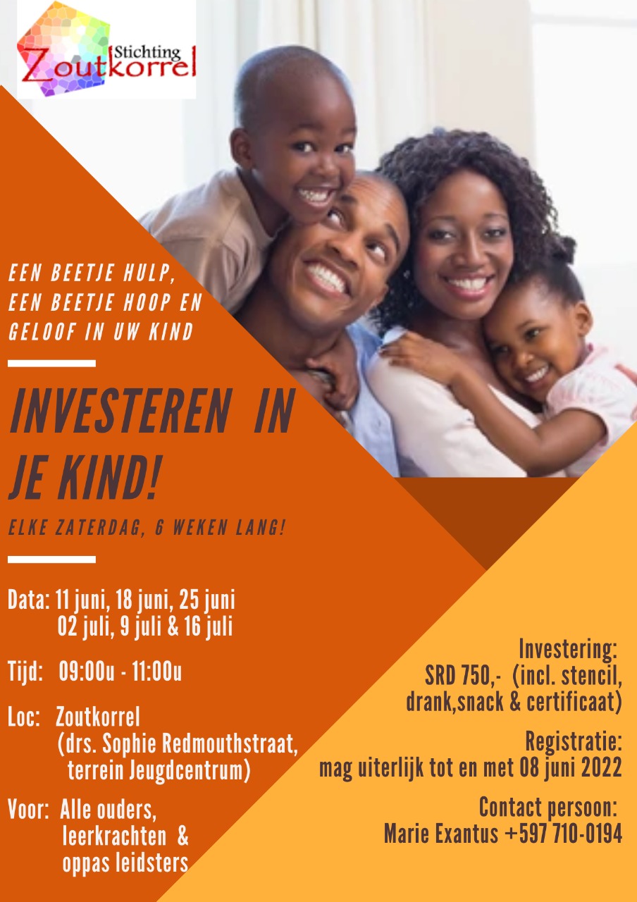 “Opvoeden is en blijft steeds weer een uitdaging, omdat onze kinderen op de wereld komen zonder ‘bijsluiter’. De directe betrokkenen waar het kind opgroeit, zijn enorm belangrijk voor de vorming van het kind. Het doel van deze training is om de mensen tools en vaardigheden aan te reiken met betrekking tot opvoedvaardigheden, maar ook dat zij onderling van gedachten kunnen wisselen welke bijdrage zij leveren in het opvoeden”, aldus Stichting Zoutkorrel.