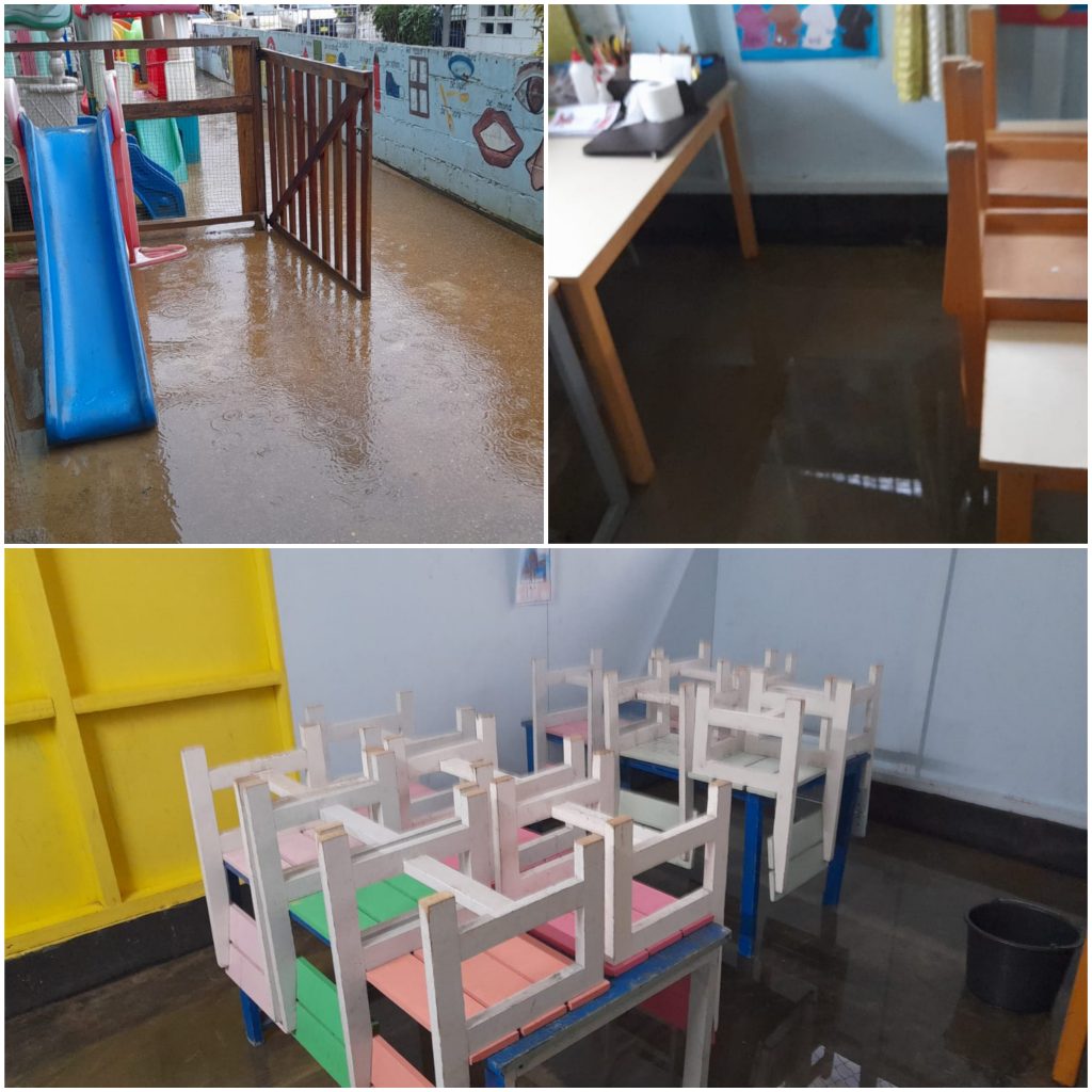 Vanwege de zware regens en wateroverlast, was het NKC Instituut (filiaal Noord en Zuid) donderdag 2 juni genoodzaakt haar deuren dicht te houden. Het erf, kantoorruimte, klaslokalen en toiletten waren onder andere onder water gelopen. De leerkrachten van zowel filiaal Noord als Zuid hebben zich in de loop van de dag ingespannen om alles weer schoon te krijgen.
