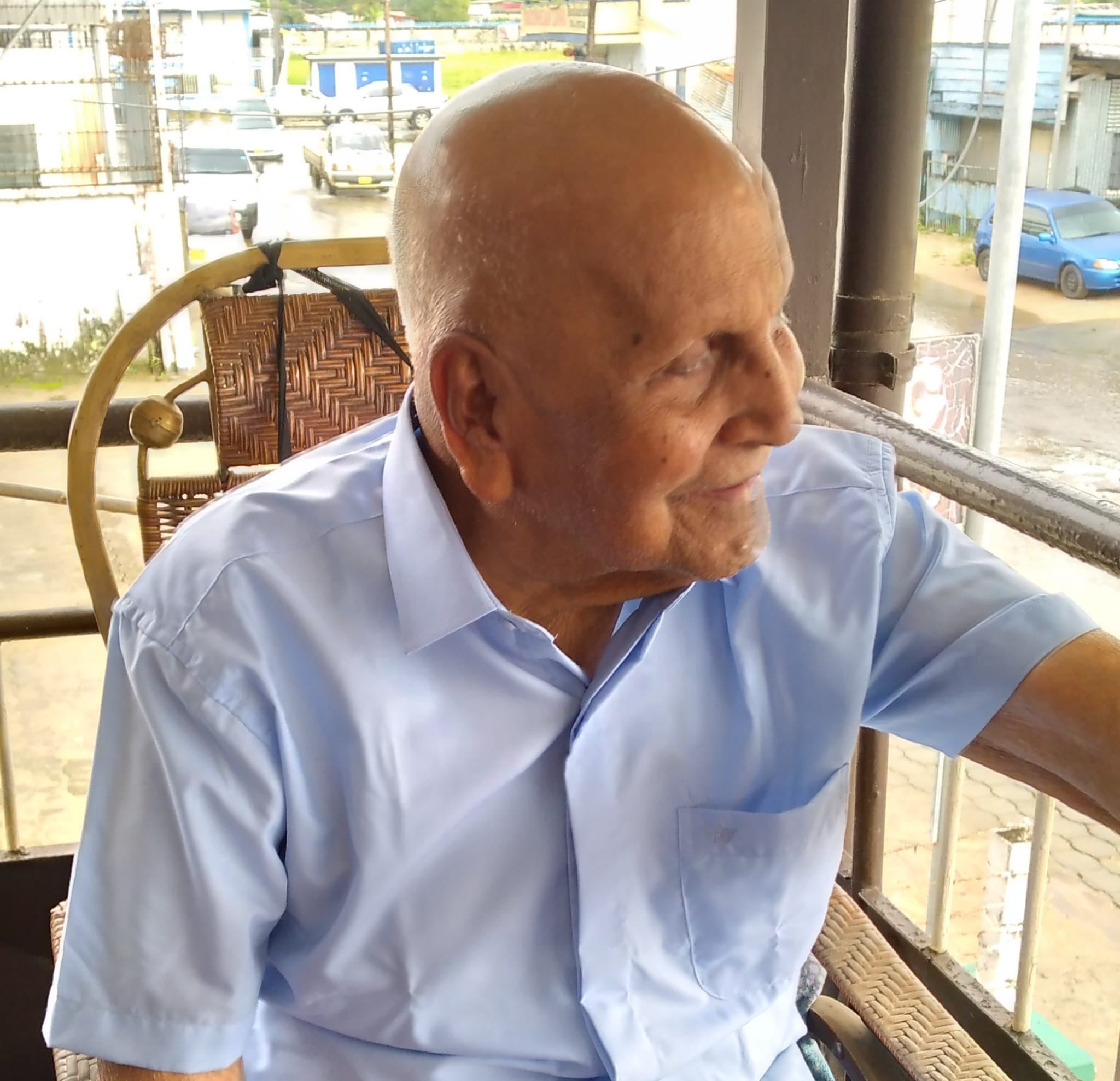 Harrypersad Kanhai, inmiddels 97 jaar, kijkt terug op de dag van de Hindoestaanse immigratie, die zondag werd herdacht. De op 19 november 1924 geboren seniorenburger heeft bij een eerdere herdenking in 1945, als 20-jarige een Neemboom geplant aan de Waterkant.