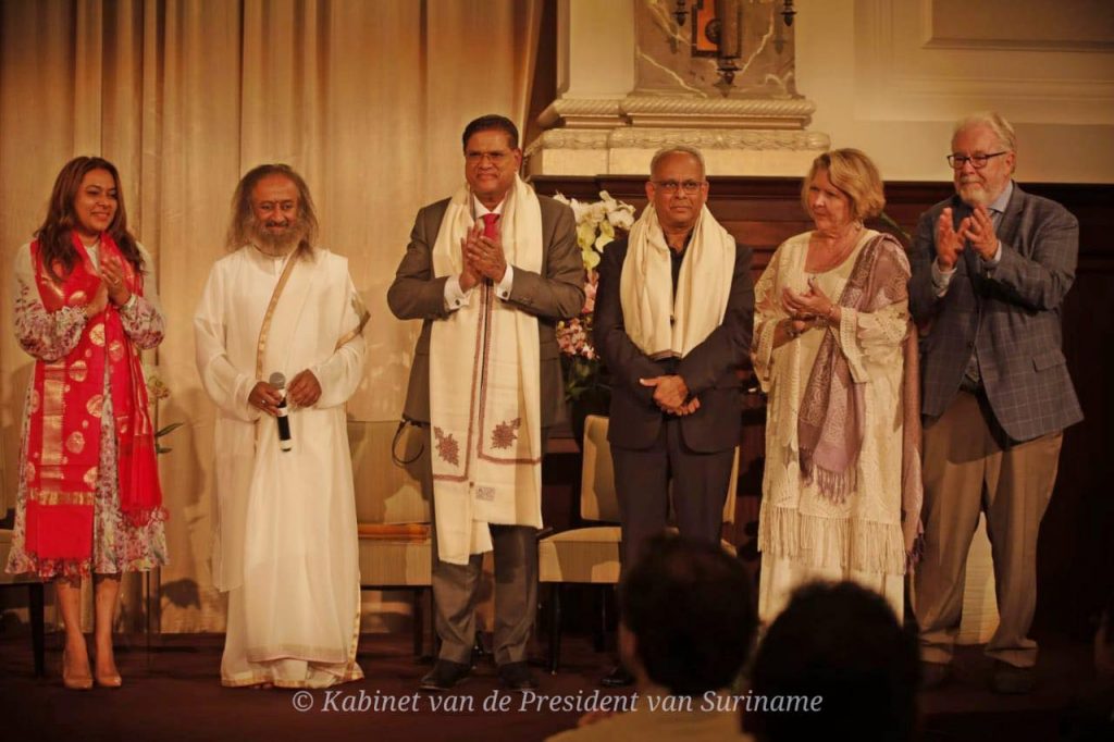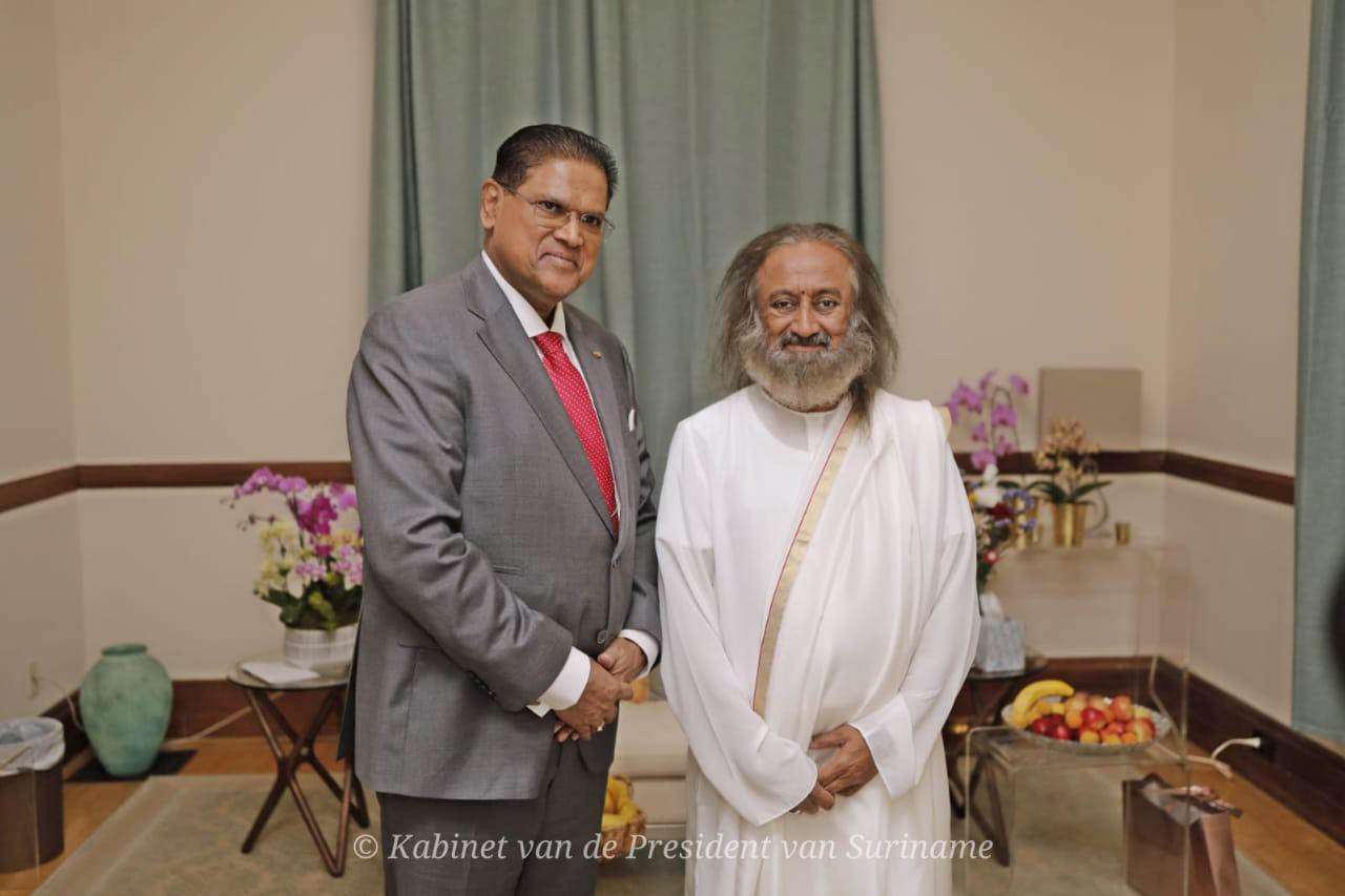 De president wordt volgens Gurudev gezien als een visionaire en dynamische leider. Gurudev gaf zijn zegeningen en beste wensen aan de president voor het voorzitterschap van CARICOM, dat hij per 1 juli zal bekleden, zo laat de president via social media weten.