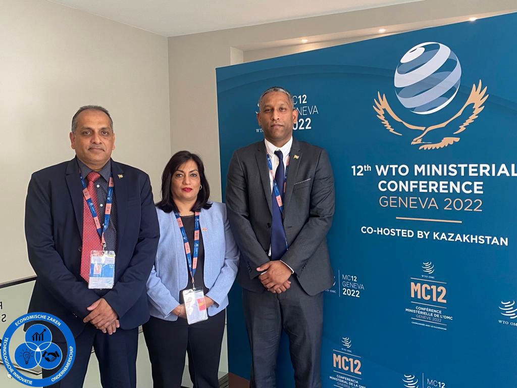 Een delegatie van Suriname onder leiding van de minister van Economische Zaken, Ondernemerschap en Technologische Innovatie (EZ), Rishma Kuldipsingh, neemt deze dagen deel aan de World Trade Organisation (WTO) 12e ministeriële conferentie in Genève, Zwitserland. Tijdens de conferentie worden issues besproken zoals WTO-hervorming, Covid-19 pandemie, de intellectuele eigendommen van Covid-19 vaccins, subsidies in visserij, e-commerce en investment facilitation. De conferentie duurt van 12 tot en met 15 juni.