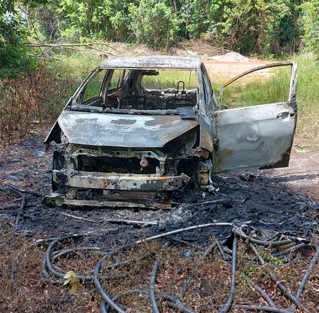 Agenten van het politiebureau Paranam hebben vrijdagochtend 17 juni een uitgebrande auto (zie foto: bron KPS) en het lichaam van een man aangetroffen langs de Afobakaweg, zo meldt het Korps Politie Suriname, KPS.