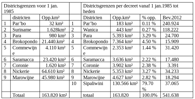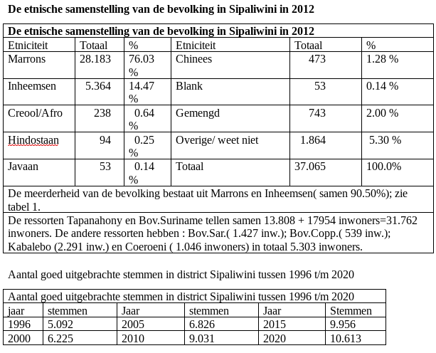 Het district Sipaliwini heeft 4-DNA leden, 66 RR- en 11 DR-leden. Dit district telt in totaal 81 volksvertegenwoordigers op nationaal en regionaal niveau. Op 1 januari 1985 hebben wij nieuwe districtsgrenzen gehad.