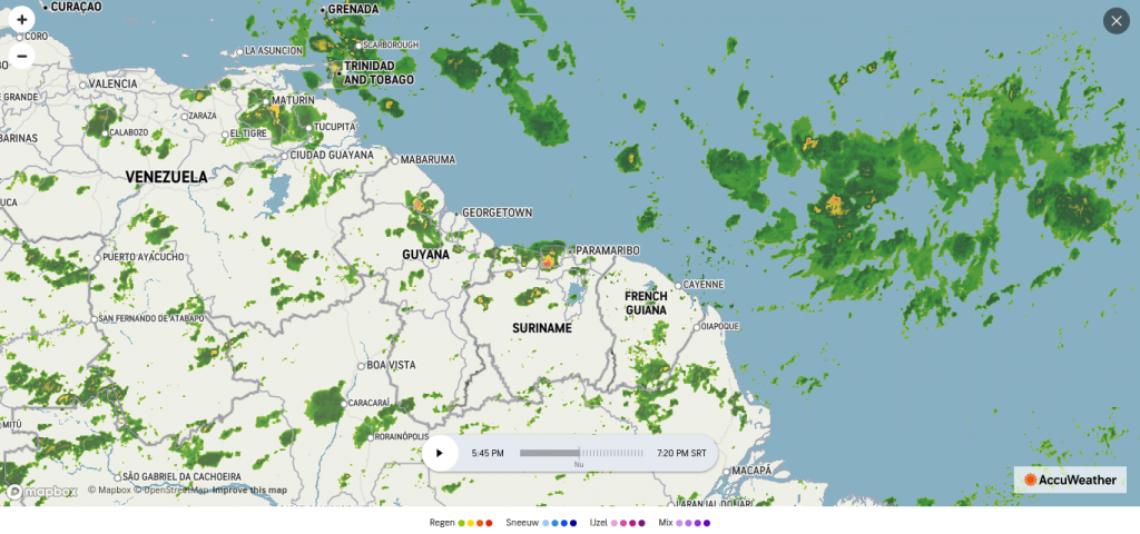 Eerder hadden we te maken met zand van een zandstorm in Afrika, dat neerkwam in Suriname met de regen. De tropische storm zal vooral voelbaar zijn in het kustgebied. We hebben al in het kustgebied behoorlijke overstromingen gehad die gebieden onder water hebben gelegd. Huizen waren onder water, het verschil tussen straat, berm, lozing en erf was niet te zien. Laatst was er naast regenval ook een springvloed met een Surinamerivier die dik was aangezwollen en buiten haar oevers trad.Â