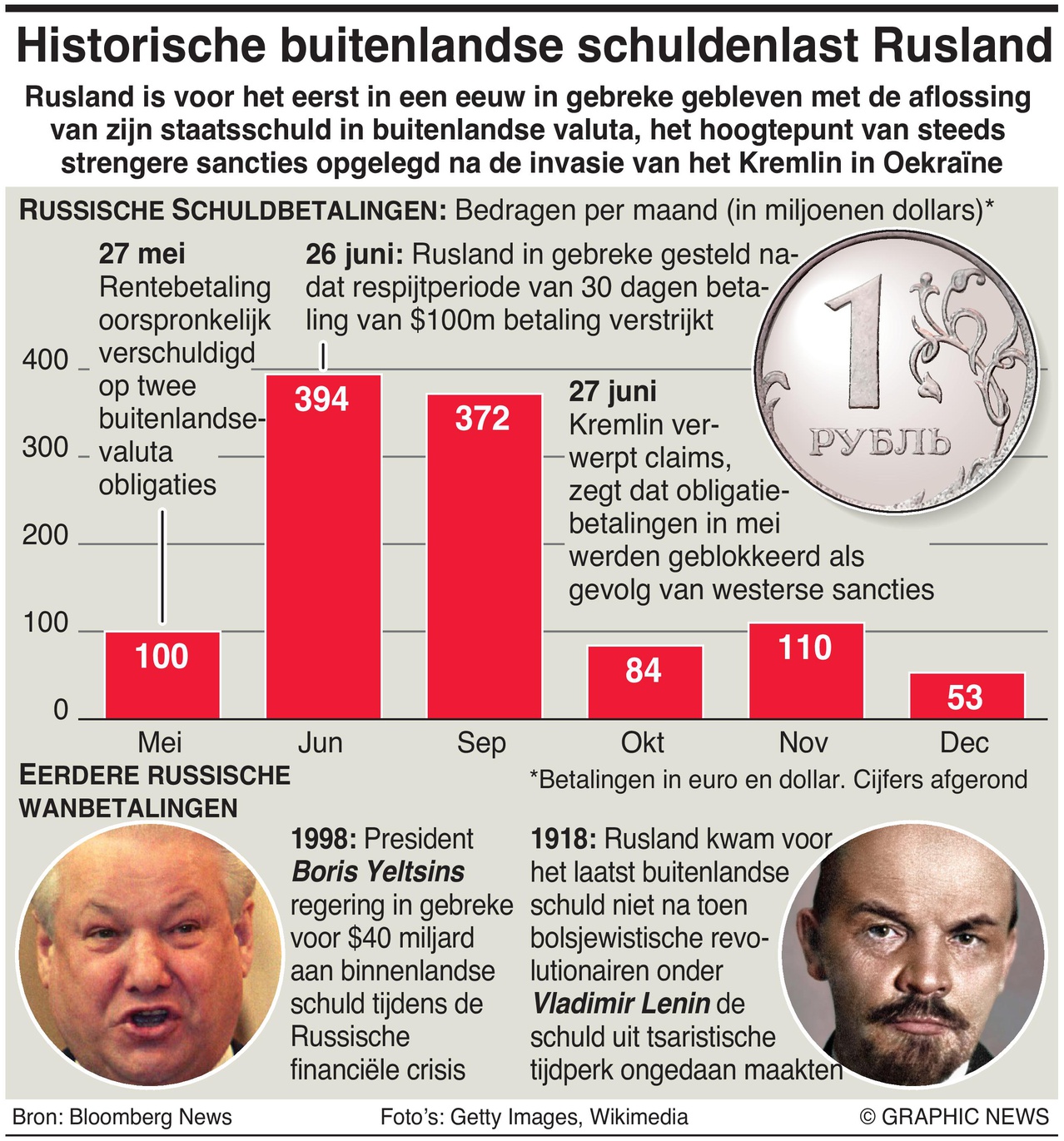 Het gaat om een bedrag van circa 100 miljoen dollar die Rusland aan buitenlandse financiĆ«le partijen verschuldigd was. Het is van 1998 geleden dat Rusland zijn schulden niet afbetaalde ā toen ging het om binnenlandse schuld. Voor een wanbetaling tegenover buitenlandse beleggers moet je al teruggaan tot 1918, toen Lenin een lening van het oude tsaarregime weigerde terug te betalen.